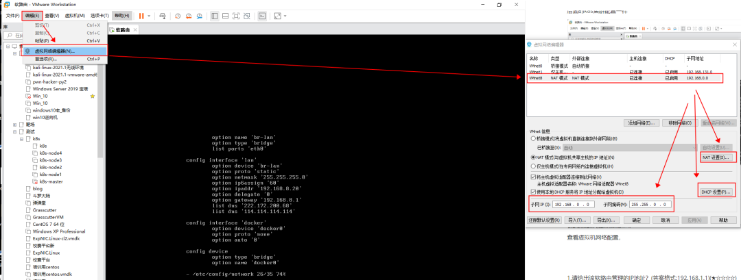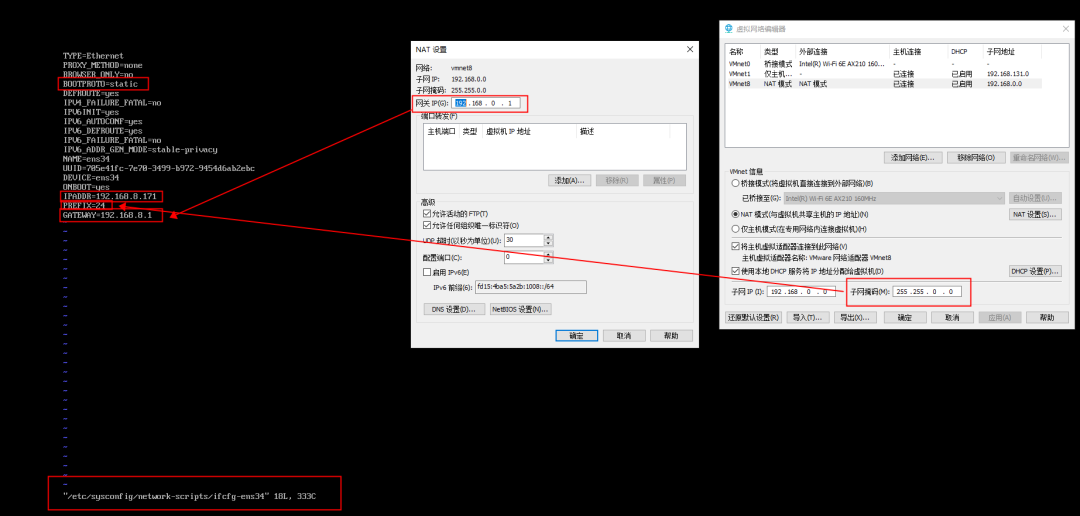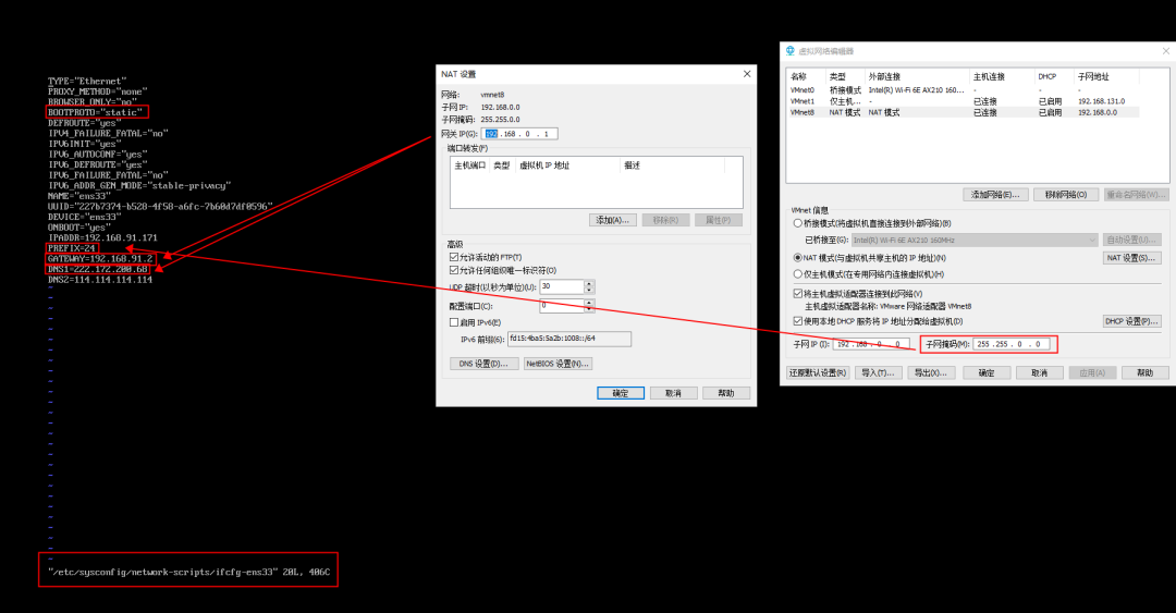 a. 虚拟网络编辑器中子网IP和掩码组成的网段必须包括我们该台虚拟机,或者该段虚拟机集群的网段