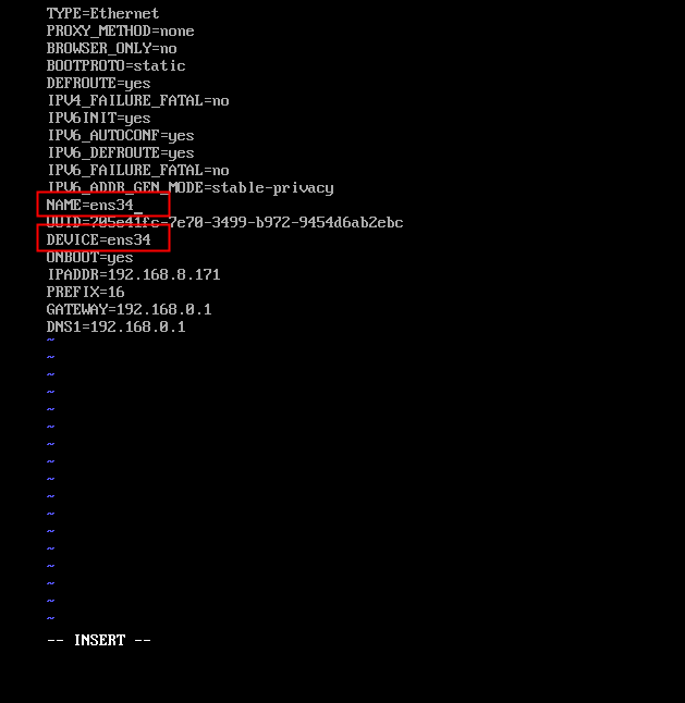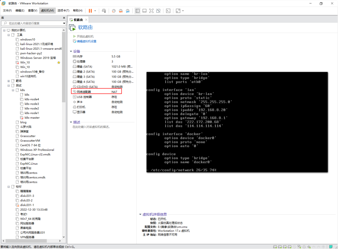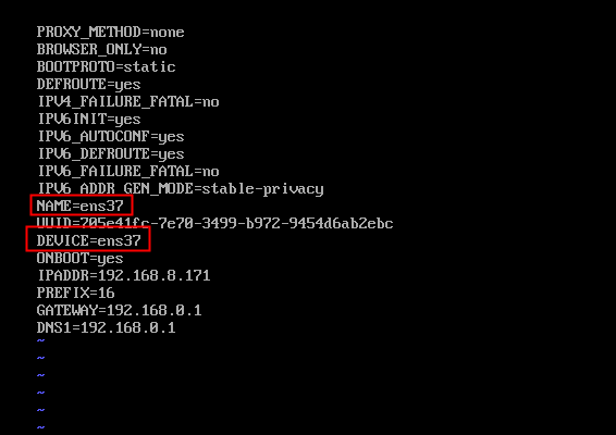 这里只有lan这张网卡拥有配置,我们对其进行修改,保持IP不变,将其他选项修改成我们虚拟网络编辑器中的网络配置,如果一台机器有多个网络配置,我们要在虚拟机设置里,增加多张网卡后,再对网络信息进行配置,就像后面的k8s集群配置一样