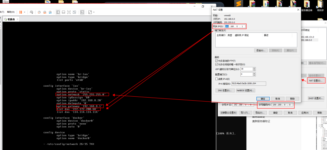 b.将对应的掩码,网关,其中一个dns都设置成虚拟机网络配置中对应的值