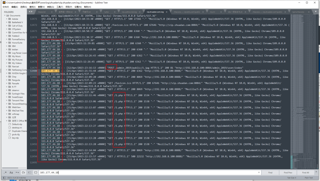 在刷单站的日志中,103.177.44.10这个IP集中出现在最后,对1.php进行操控,其他地方未见该IP