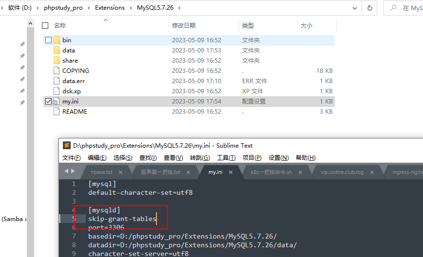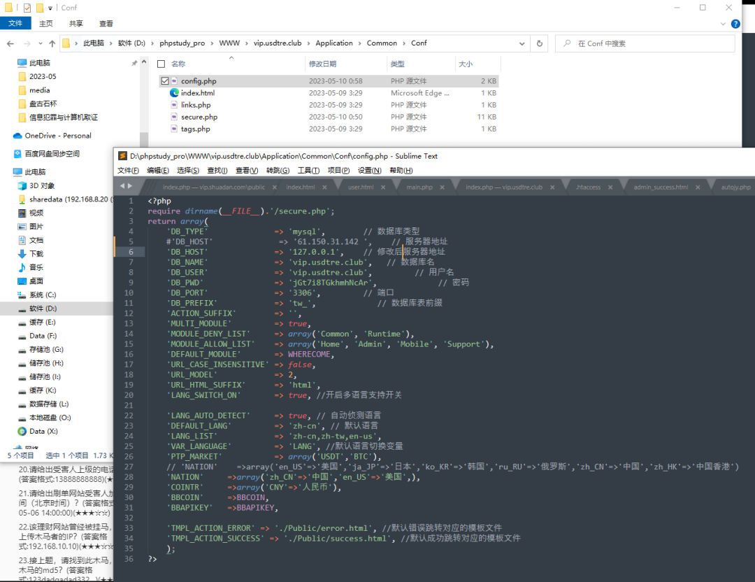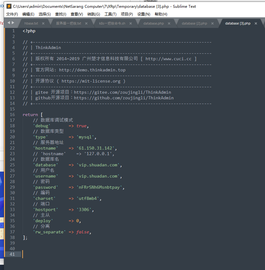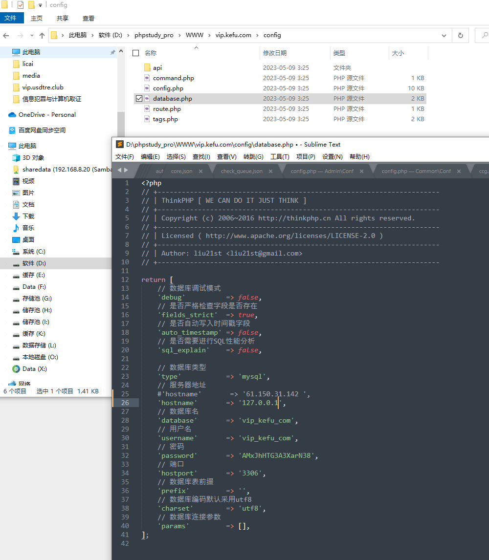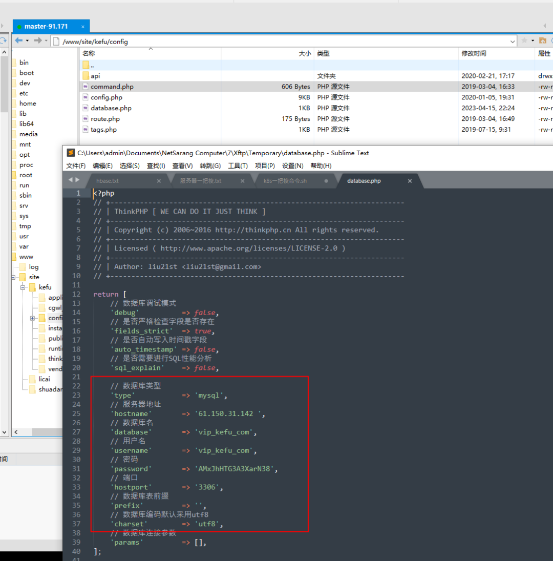 其下conf文件加下的config文件并未配置数据库连接信息,推测使用的是前文的全局配置,