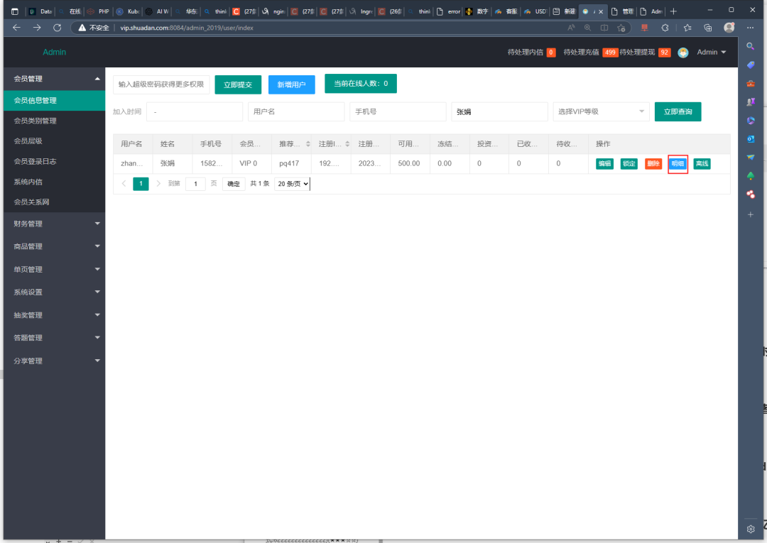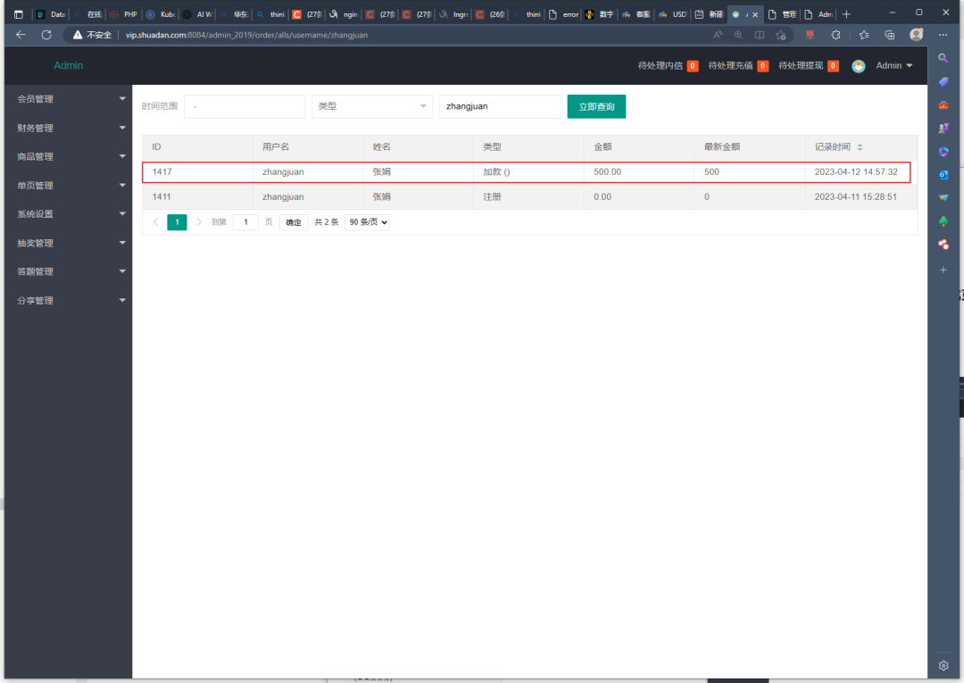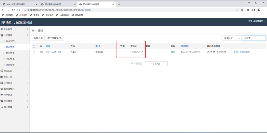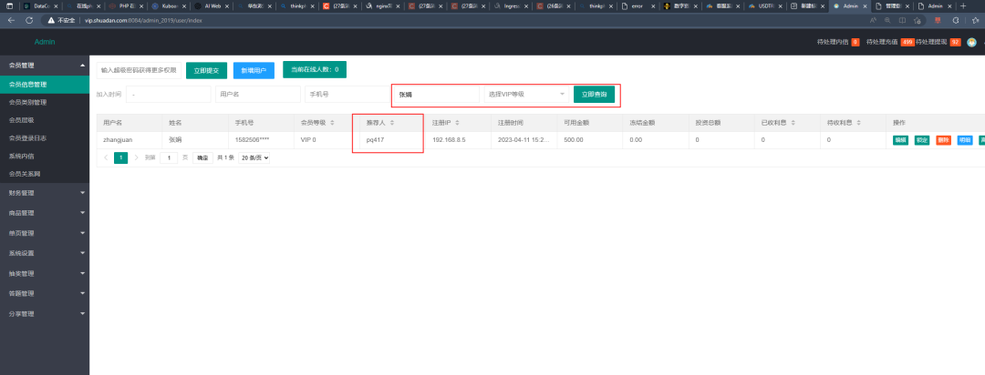 查找张娟,其上级为一个用户名叫xdl123的用户