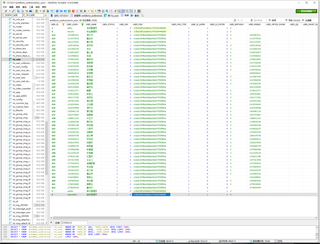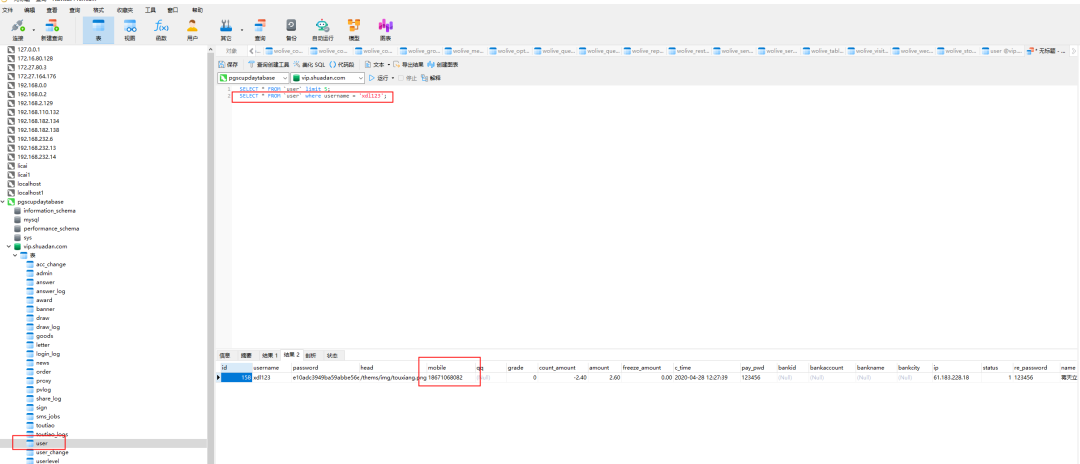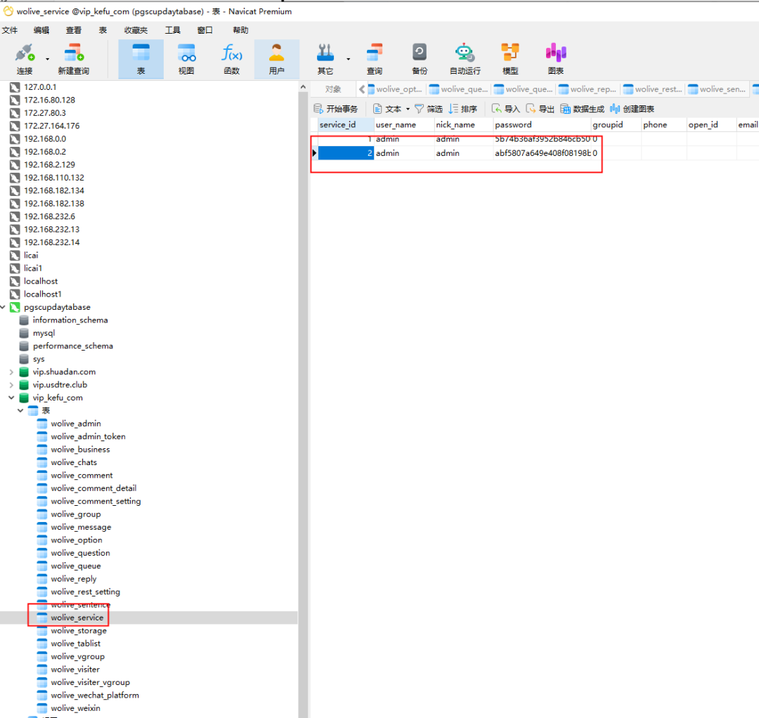 其中可见2数据库,猜测2数据库分别对应下面两个系统