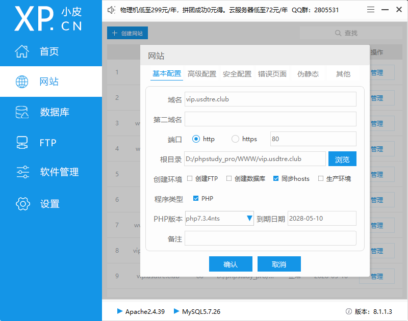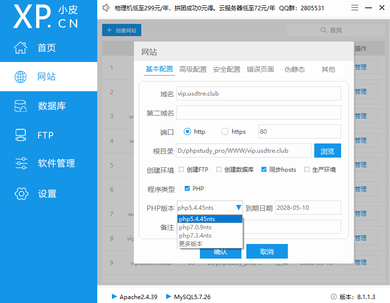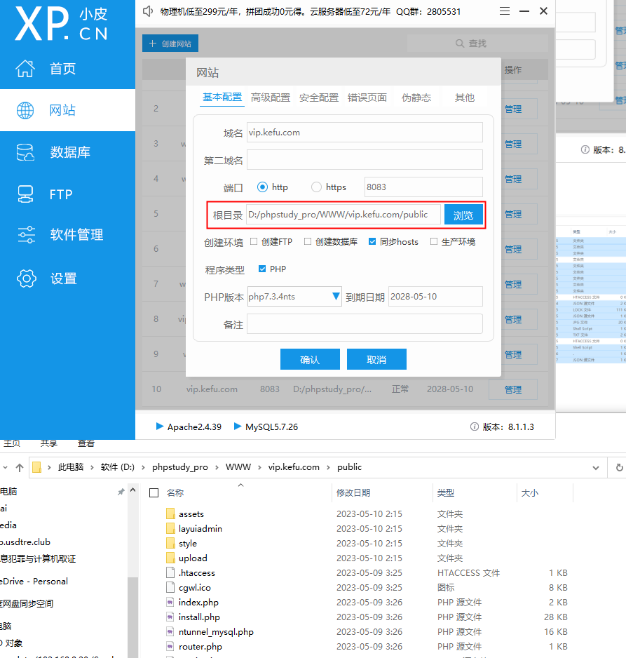 根据客服网站的日志,按原始的域名创建一个新站,同时设置端口为原来的端口vip.kefu.com:8083