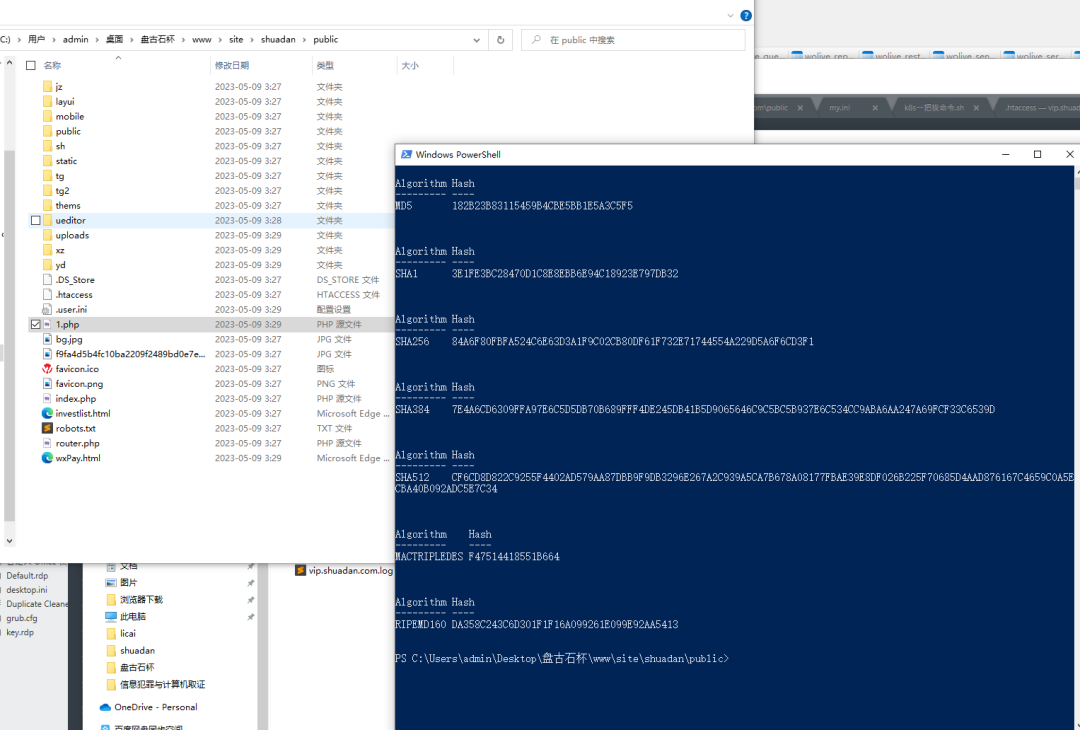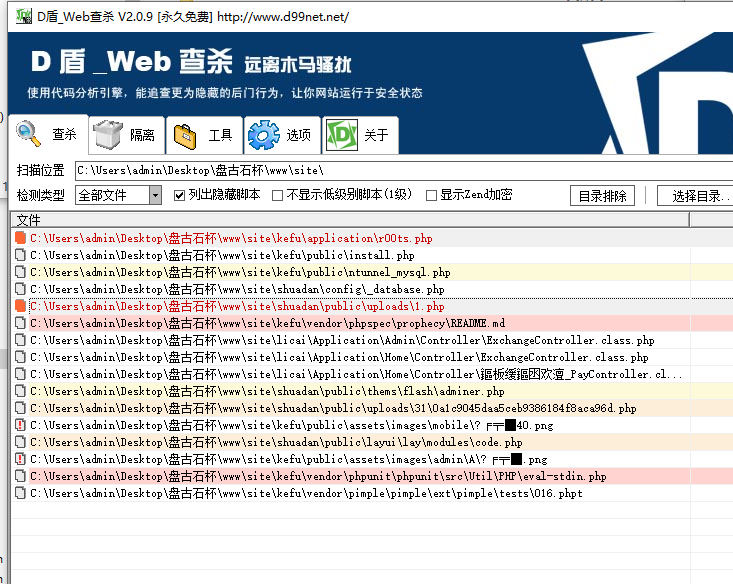 在\www\site\shuadan\public\uploads下发现木马1.php,因该木马在上传目录下,更有可能是攻击者上传的,其他的更像是管理工具