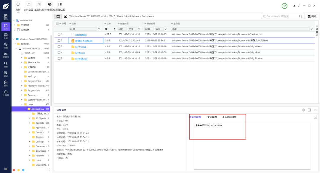 在Windows Server 2019-000003.vmdk/分区7/Users/Administrator/Documents下发现一txt文件,内有类似密码文件,密码为123w.pgscup.com
