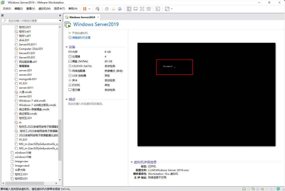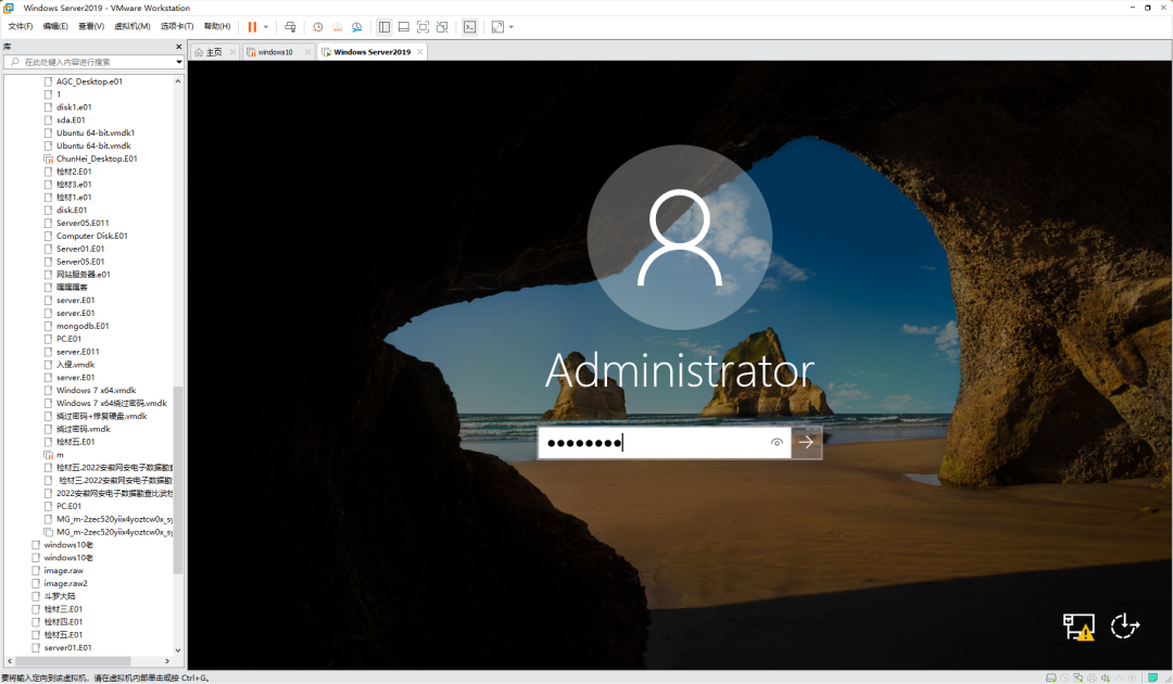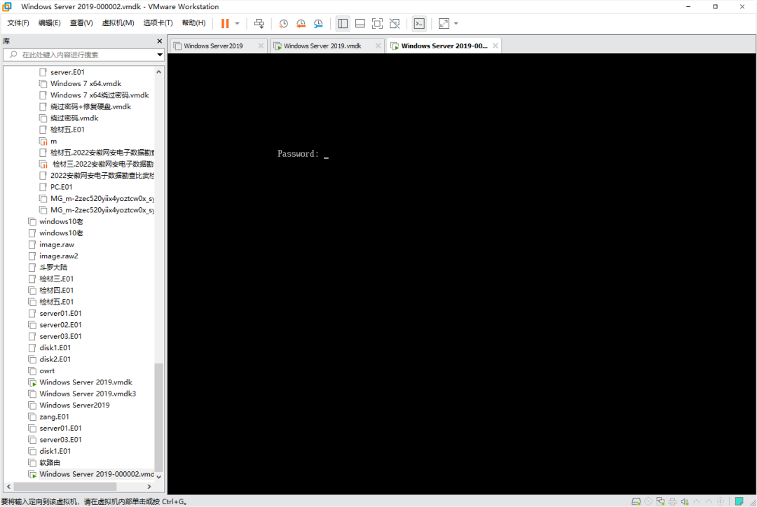 仿真Windows Server 2019-000002.vmdk进入锁界面,直接运行vmx也是进入锁界面,