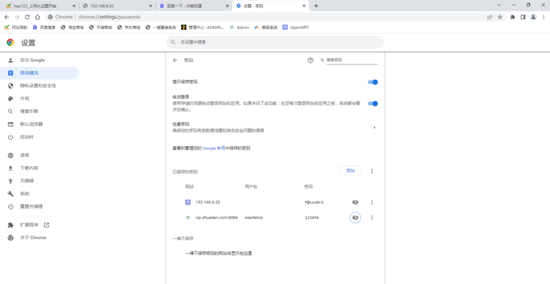 因为openwrt通常使用web管理,所以其网页账号密码可以保存在浏览器中,在前面检材中浏览器保存的表单可以读取到账号密码为[email protected]