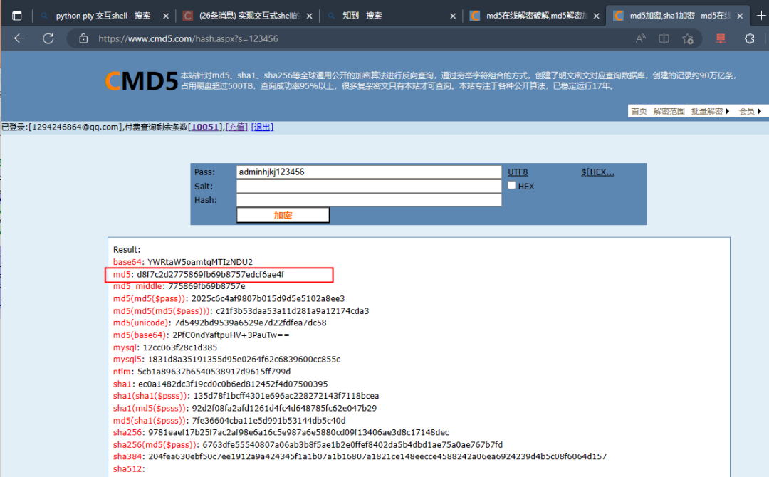 将用户名和hjkj和密码拼接后进行一次md5操作