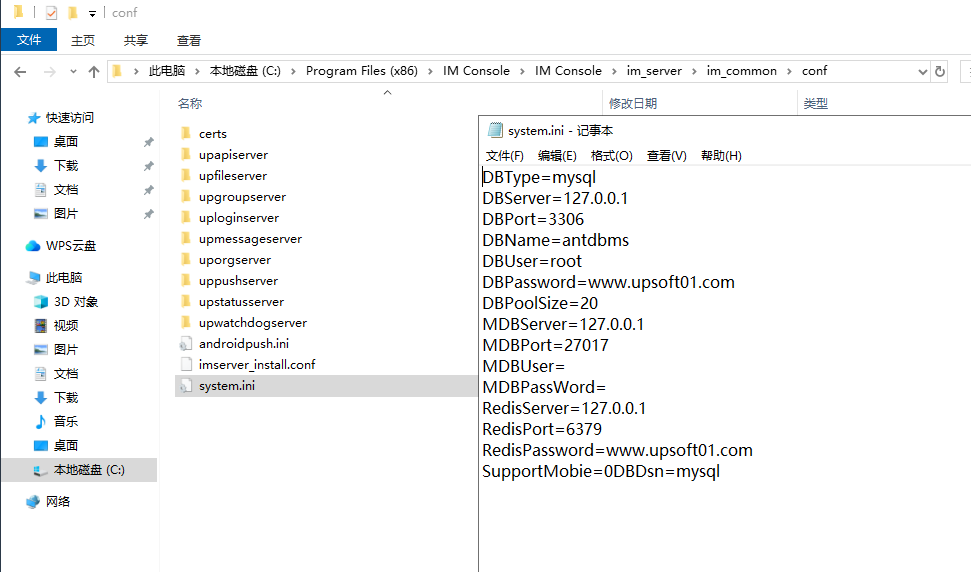 在C:\Program Files (x86)\IM Console\IM Console\im_server\im_common\conf中检查到一system.ini文件