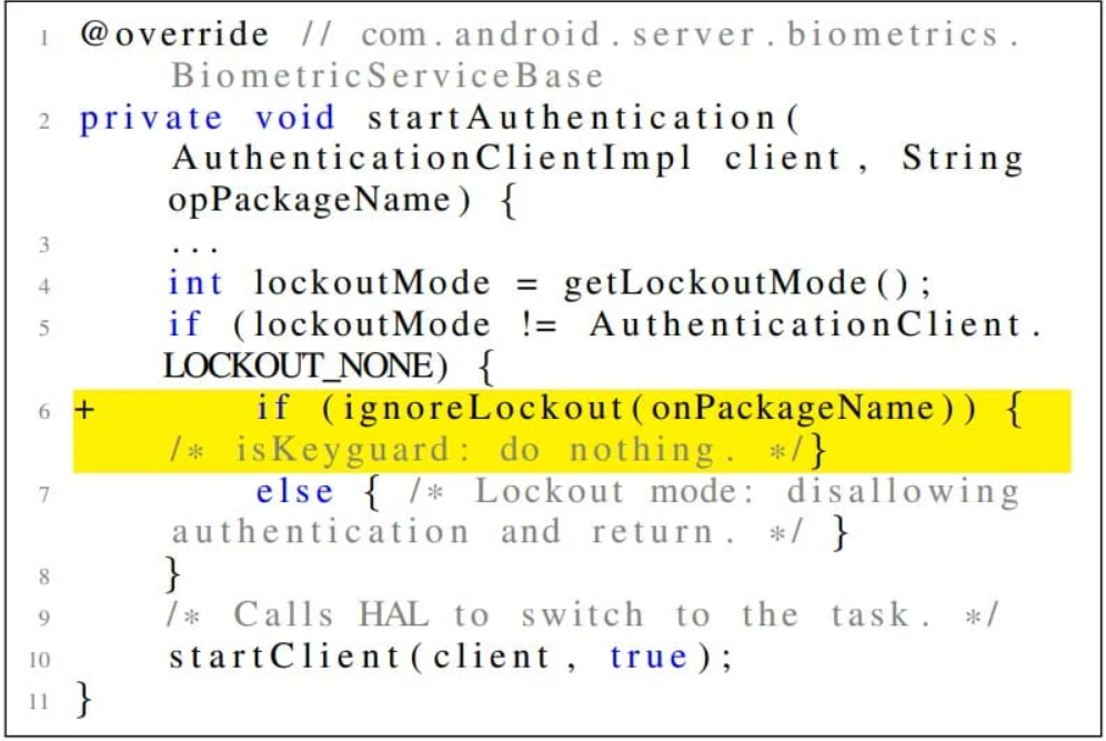 因为在安卓设备上实现了无限的测试次数,因此只要有足够的时间,攻击者就可以暴露破解安卓设备指纹,并解锁设备。