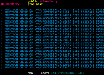 VMProtected DriverEntry显示了一个无条件分支指令作为它的第一条指令