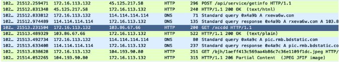 引起我们注意的特定HTTP流量是从以下URL下载的一些图像(JPEG–JFIF标头):http://pic.rmb.bdstatic.com//bjh/.jpeg.