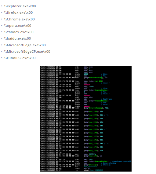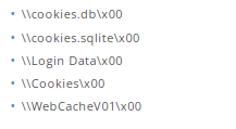 正如Proofpoint研究中所指出的,该恶意软件具有查找和窃取保存的浏览器密码的能力。除了保存的浏览器密码外,该恶意软件还使用存储的cookie从Facebook检索用户访问令牌。