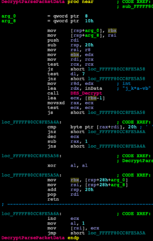 rootkit直接与\\Device\Tcp进行交互以进行通信。因此,在受攻击的设备上运行的用户模式工具(如netstat和tcpview)会隐藏连接。