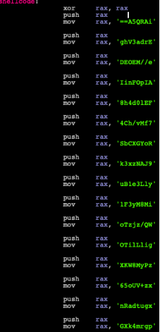图2:摘自shellcode,将许多值推送到堆栈并形成Base64 blob