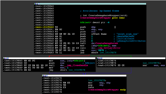 CreateSemphoreWrapper函数的反汇编