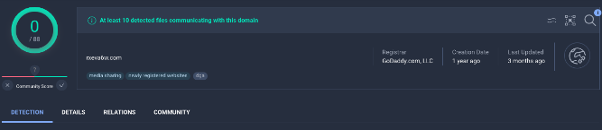 VirusTotal显示了在rveva6w.com域上的检测结果