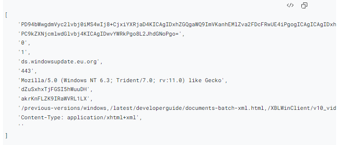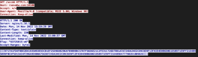 通过查看数据,我们可以看到前32个字节与前一个请求对hxxp://rxeva6w.com:10100/xccdd的十六进制格式的服务器响应相同(代码段10)。