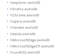 如果字符串没有被拒绝列出,那么过滤器函数将把IRP转发到设备堆栈中的底层驱动程序。但是,如果字符串被拒绝列出,它将首先检查试图访问该文件的进程是否来自以下列表中的允许列出的进程: