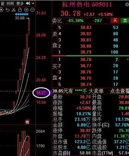 我就拿电力板块的杭州热电荷台海核电来举例吧。