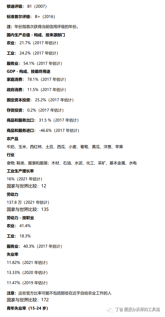 - 2006年:在经济类别中,除按购买力平价(PPP)计算的国内生产总值外,还采用官方汇率(OER)计算的国内生产总值数据。运输部分的条目重新排序;“公路”改为“公路”,“港口和港湾”改为“港口和码头”。