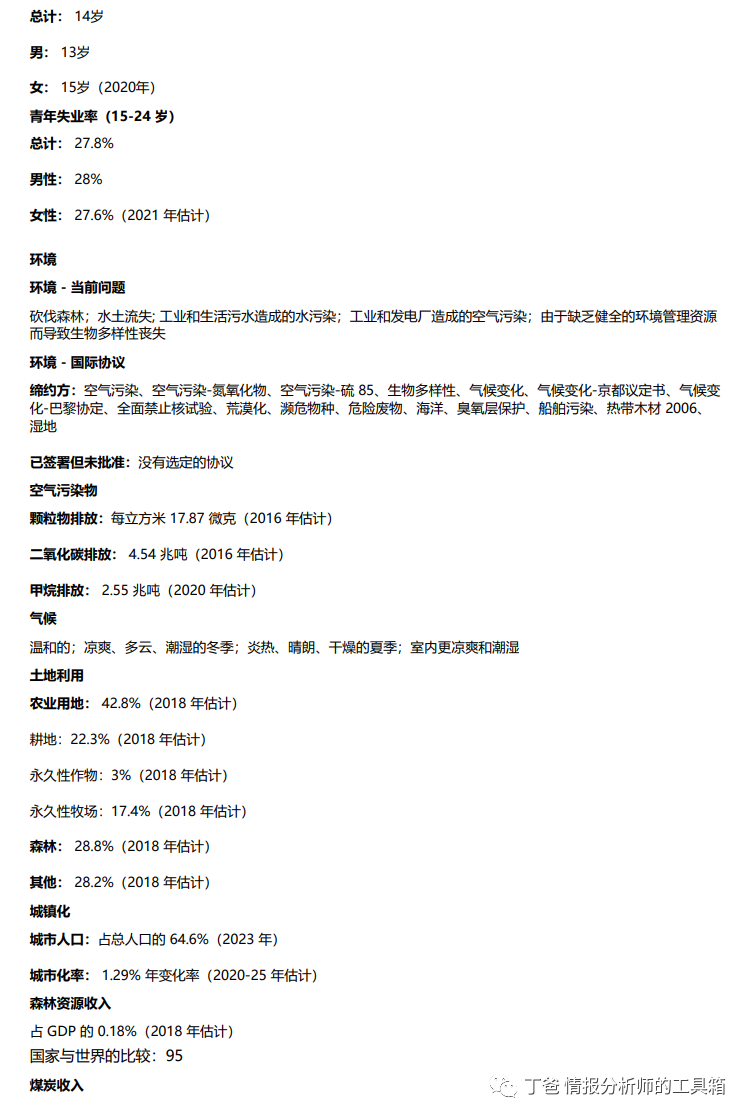 本书信息来源于国家科学基金会信息由南极信息计划、国防部武装部队医疗情报中心、商务部人口普查局、劳工部劳工统计局、中央情报局、国家南极计划管理委员会、国防部国防情报局、能源部、国务院、内政部鱼类和野生动物管理局、交通部海事局、国防部国家地理空间情报局、国防部海军设施工程司令部、内政部岛屿事务办公室、国防部海军情报办公室、内政部美国地名委员会、国防部美国运输司令部、联合国人口司(世界城市化展望:《2018年修订版》和《世界人口展望:2019年修订版城市化和人口数据(已获许可)》、国际电信联盟、国际战略研究所、油气杂志以及其他公共和私人来源。