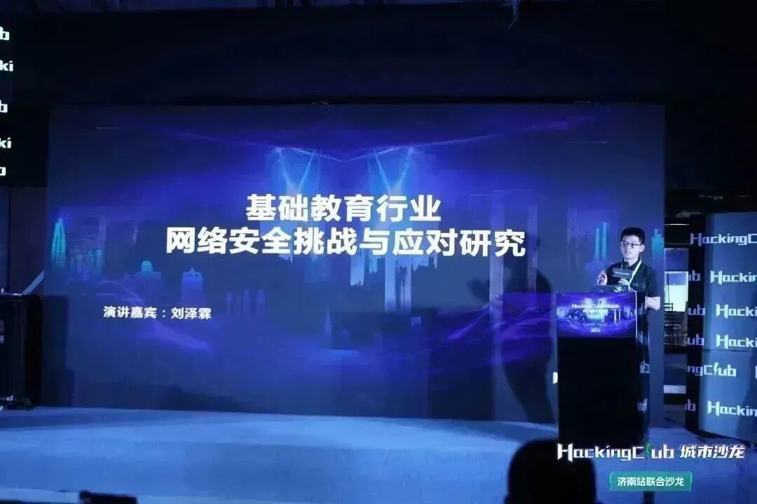 首先为我们带来分享的是刘泽霖,他分享了“基础教育行业网络安全挑战与应对研究”,从基础教育行业网络安全现状入手,并以A中学作为主要对象,通过调查、分析和案例研究等方式,深入挖掘基础教育行业网络安全现状的实际情况,为进一步提高基础教育行业网络安全提出了相关建议和措施。