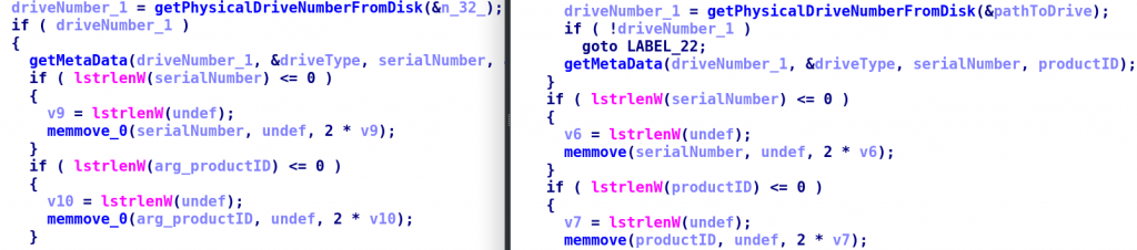 串(左,MD5: 84BDB1DC4B037F9A46C001764C115A32)和CommonMagic(右,MD5: 7C0E5627FD25C40374BC22035D3FADD8)