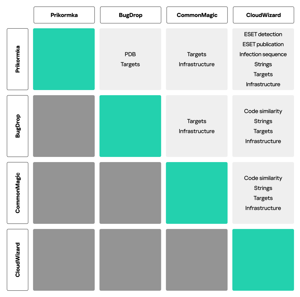 对CloudWizard进行细致研究之后,研究人员决定寻找一些其幕后组织的线索。CloudWizard让研究人员想起了在乌克兰观察到并公开报道的两次活动:Groundbait活动和BugDrop活动。ESET于2016年首次公开了Groundbait活动,并于2008年首次观察到其植入程序。在调查“Groundbait”活动时,ESET发现了Prikormka恶意软件,这是第一个被公开有明确攻击目标的乌克兰组织开发的恶意软件。根据ESET的报告,其幕后组织很可能来自乌克兰。