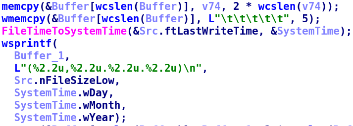 8.Prikormka和CloudWizard样本中的文件列表模块具有相同的名称:Tree。它们也对目录列表使用相同的格式字符串:“\t\t\t\t\t(%2.2u,%2.2u.%2.2u.%2.2u)\n”。