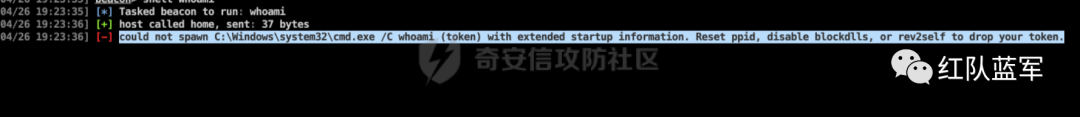 因为渗透到域控的时候,在半夜2点半,所以在拿到DC2的权限的时候,就直接关掉电脑睡觉啦,没有进行留后门和做进程注入,导致第二天上线的时候执行命令出现如下界面。