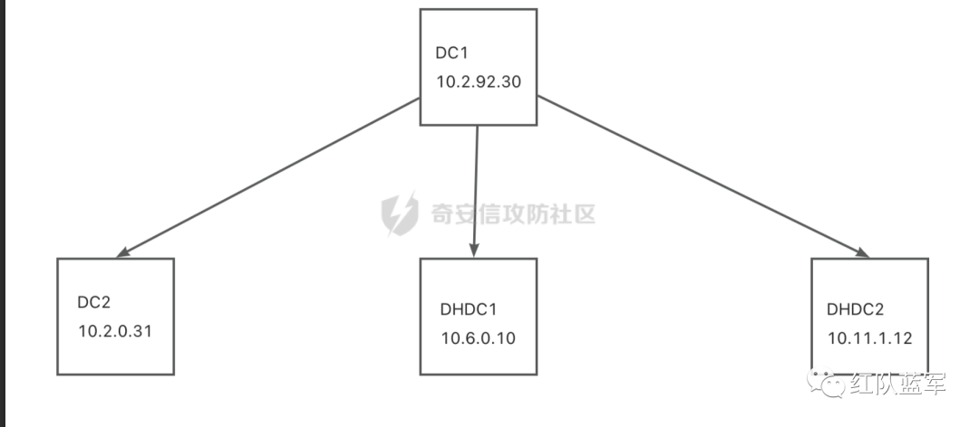 这里经过ping之后发现,域控不是都在同一个网段,应该是如下的结构。