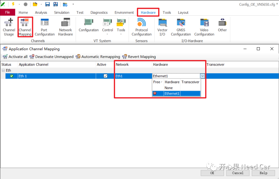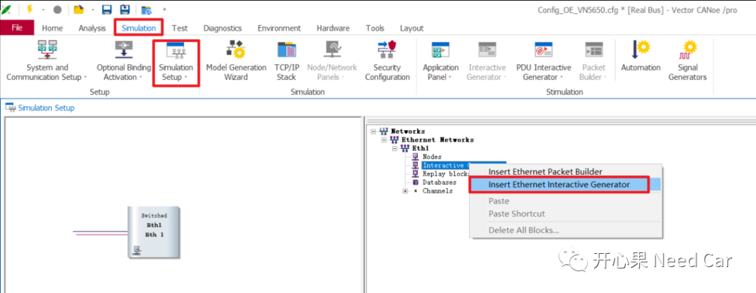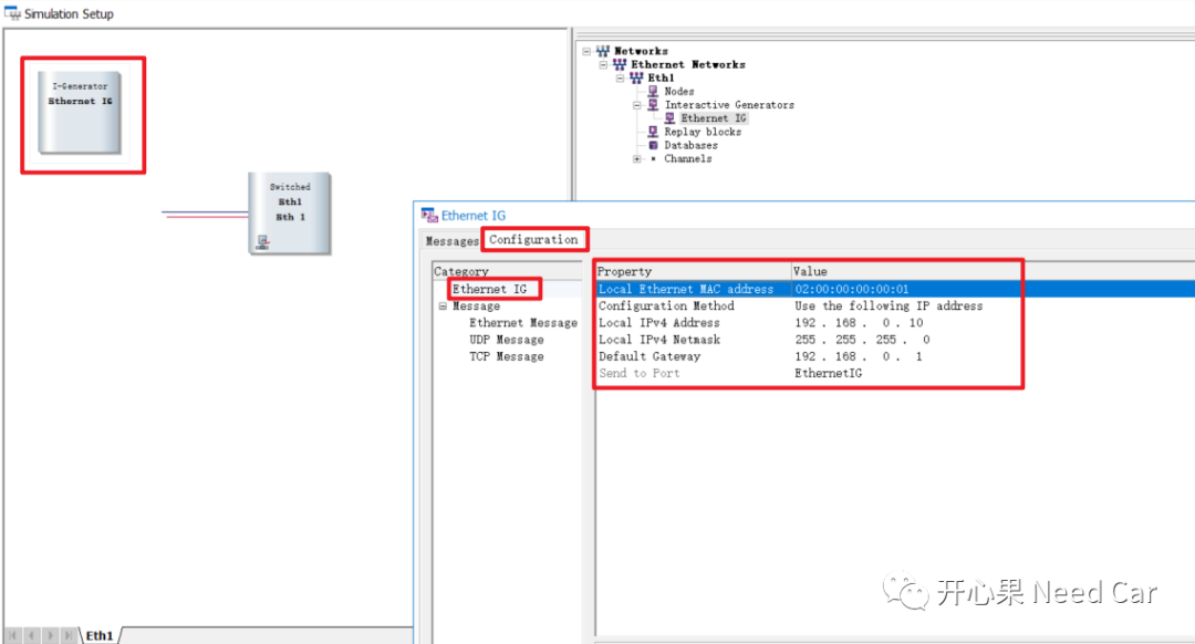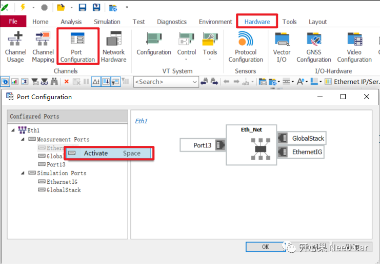 完成物理连接以后,进行CANoe配置,以便于以太网数据的监控和仿真。
