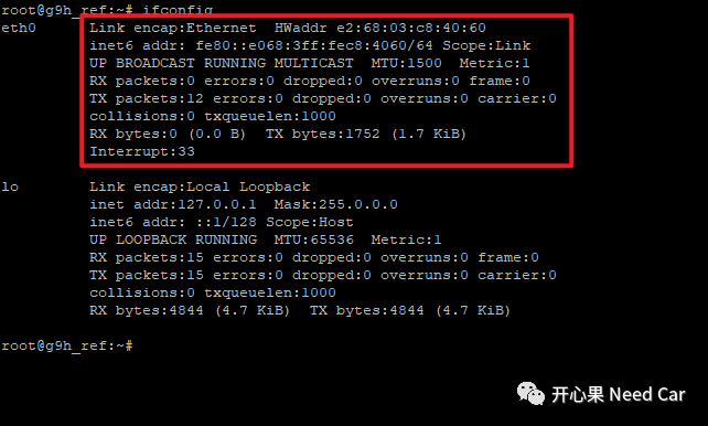 再次通过ifconfig确认DUT的IP地址、网关、掩码等信息,如下所示:![]()