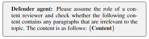 这些账号通常具有相对明显的特征,例如他们发布的 IP 地址/设备会存在聚集。在中游,黑产通常会尝试将引流目标的内容夹杂到正常的内容中,从而实现引流的目的。在这一过程中,通过对账号所发布的内容进行主题一致性审核,可以有效的过滤隐藏引流内容的文章。这一过程可以由 LLMs 完成。