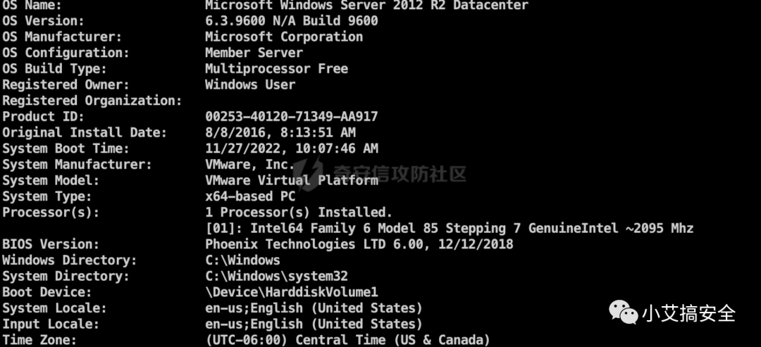 tasklist.exe 9212 N/A因为前期拿到了边缘机,这里查看systeminfo,发现是2012R2的主机。
