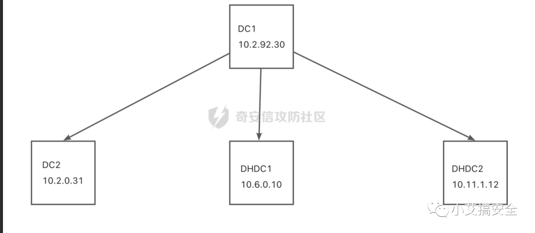 这里经过ping之后发现,域控不是都在同一个网段,应该是如下的结构。