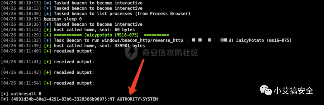 因为渗透到域控的时候,在半夜2点半,所以在拿到DC2的权限的时候,就直接关掉电脑睡觉啦,没有进行留后门和做进程注入,导致第二天上线的时候执行命令出现如下界面。
