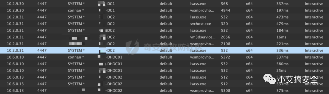 这里经过一天的折磨之后发现,以上的几种方式不好使,但是想到了抓取机器用户的hash,通过构造密码表,来进行域管的密码喷洒,这里抓取了100多个的机器用户和几个域内用户做成密码表,重新进行内网横向。