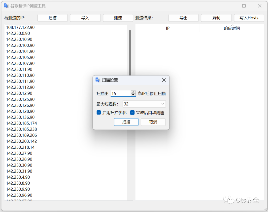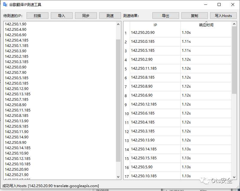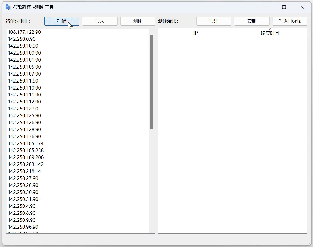 谷歌翻译服务器(translate.googleapis.com)在中国大陆的IP地址扫描、测速工具。