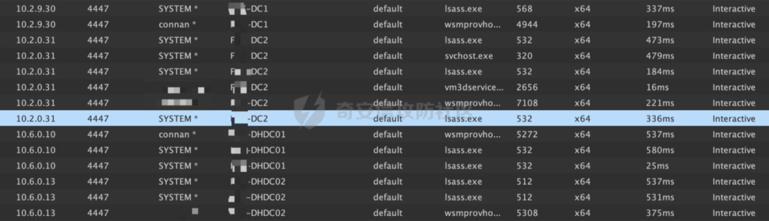 这里经过一天的折磨之后发现,以上的几种方式不好使,但是想到了抓取机器用户的hash,通过构造密码表,来进行域管的密码喷洒,这里抓取了100多个的机器用户和几个域内用户做成密码表,重新进行内网横向。