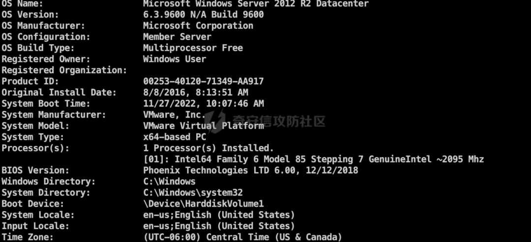 tasklist.exe 9212 N/A因为前期拿到了边缘机,这里查看systeminfo,发现是2012R2的主机。