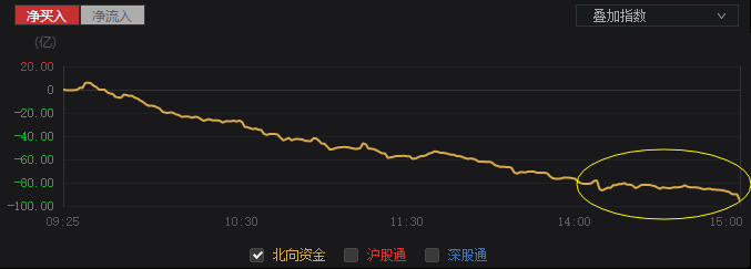 比如,这两天带领指数大跌的核心力量——北向资金,今天可没看出企稳信号。