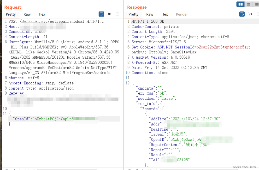 2、发现一个接口只需要openid即可访问,进行查看此接口功能