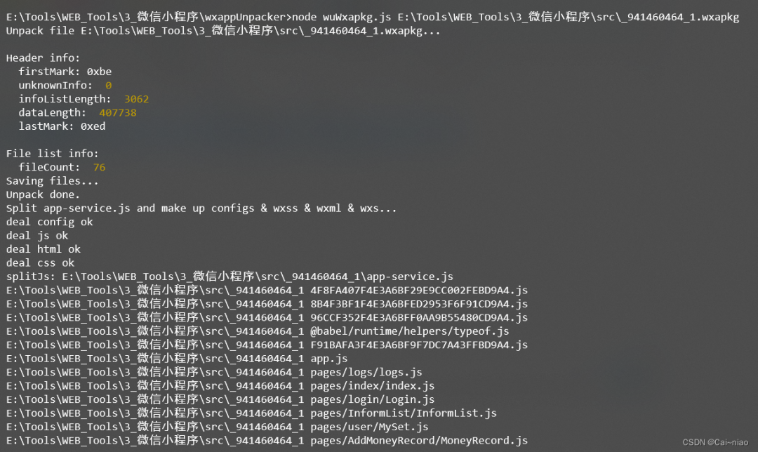 6、获取源码后,使用wxappUnpacker进行反编译,分包需要使用-s参数。