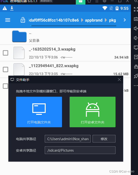 4、再次打开/data/data/com.tencent.mm/MicroMsg/目录,会发现一个加密文件名的文件夹,再打开/appbrand/pkg/目录下存放着刚才访问这个小程序的三个数据,其中一个为主包其余两个为分包。