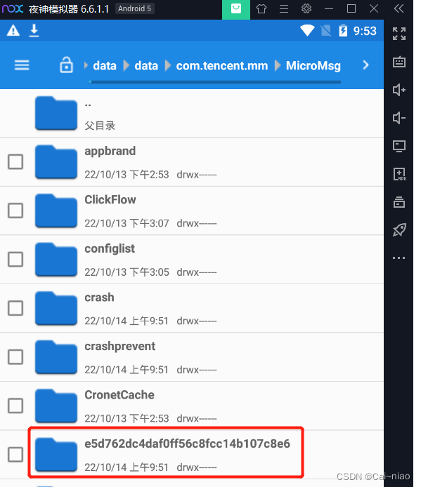 3、打开/data/data/com.tencent.mm/MicroMsg/目录,把该目录下所有文件删除,再打开微信,打开任意一个小程序。