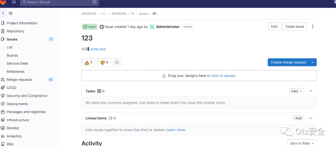 Gitlab环境搭建完成之后,我成功验证了我的猜想。这个漏洞非常简单,用了几分钟成功复现了该漏洞。